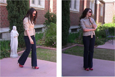 My husband and I planned on having a leisurely breakfast out before Mass this morning. That was the plan, anyway. My toddler spent the night at my mother in law's so we only had to get ourselves and our four-month-old baby ready. It seemed like a piece of cake until I found myself eyeing the clock and literally ripping the hot rollers out of my hair as the minutes flew by. As I quickly readied myself, I thought I would try to put together a new outfit for church and then quickly dismissed that idea. The time to try something new (whether it be an outfit, make-up, or a hair style) is not when you are pressed for time. So I went to a tried and true look. One that I could throw on without any thought whatsoever.