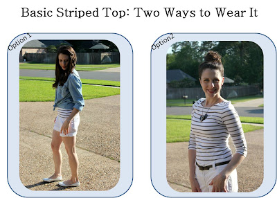 When I bought this basic striped top from Forever 21, I had no idea that I would wear it so much. Since a basic t-shirt can be worn multiple ways, I thought I would put together several outfits with the shirt as the starting point.
